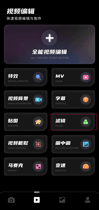 4、此外,在主功能菜单中选择“滤镜”模块,同样可以进行切换与管理。