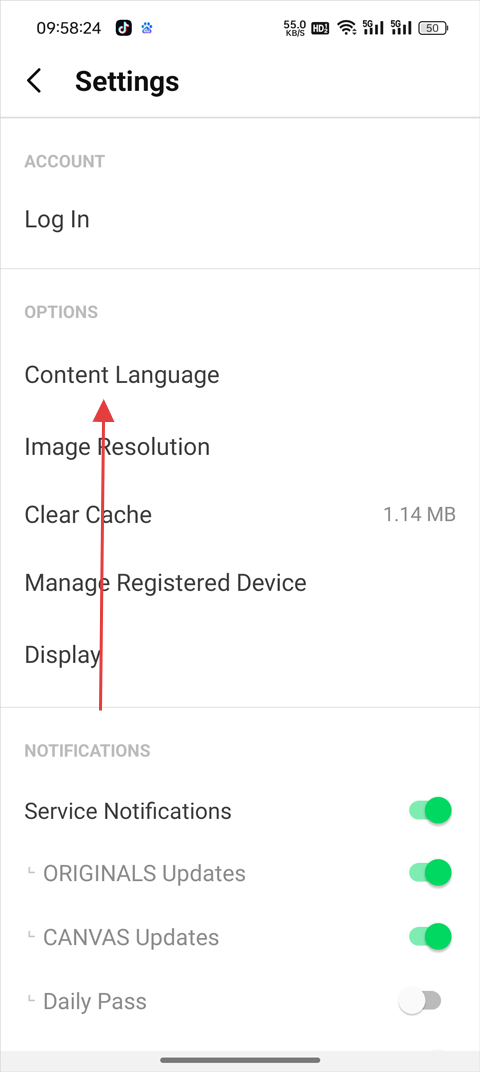 3、在设置页面选择Content Language