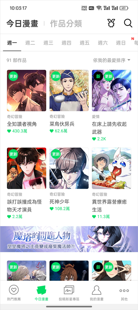 1、每日都会更新近十部的连载漫画作品,让读者及时追上最新的漫画剧情;