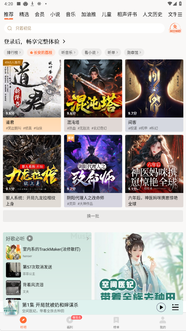 4、智能推荐:根据你的听书偏好和历史记录,软件会智能推荐相关内容,让你快速找到感兴趣的图书。