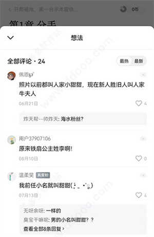 4、然后点击小说中的评论,点击打开评论弹窗,就可以看到评论还可以进行评论。