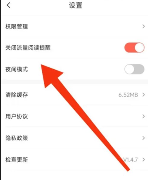 3、在设置页面中找到【夜间模式】开关,点击开启即可。