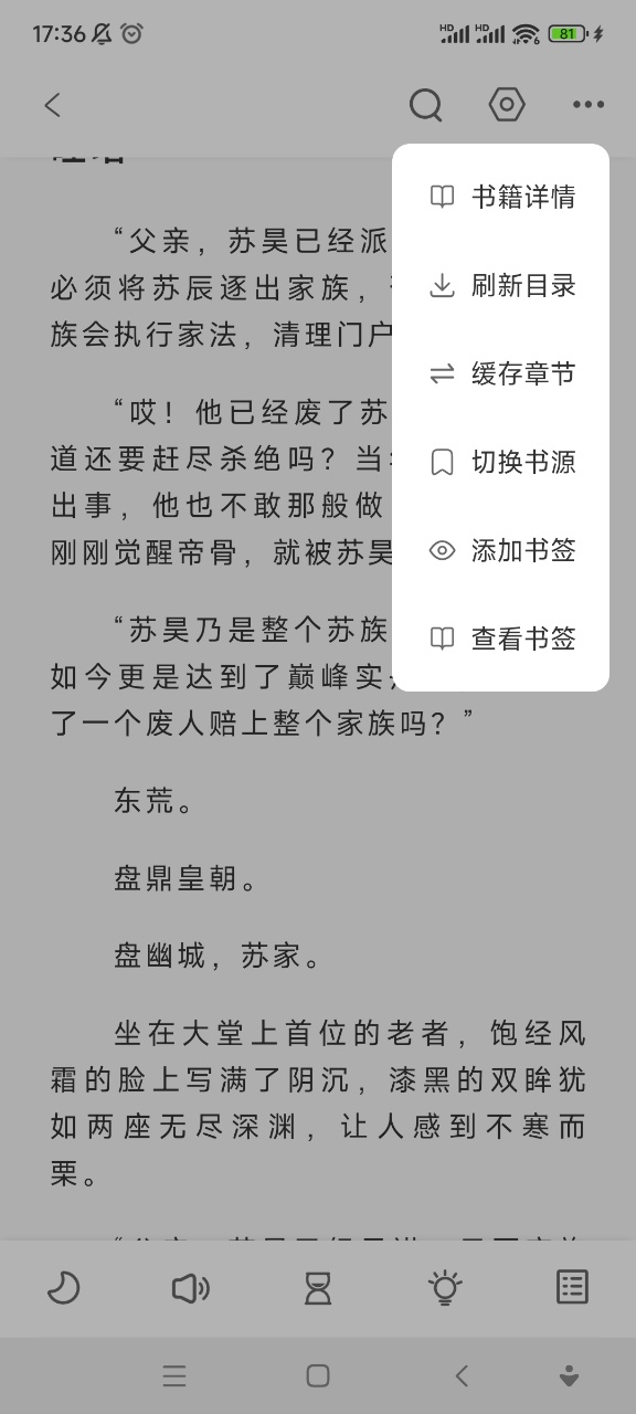2、点击开始阅读之后点击一下屏幕中间,右上角设置,点击换源;