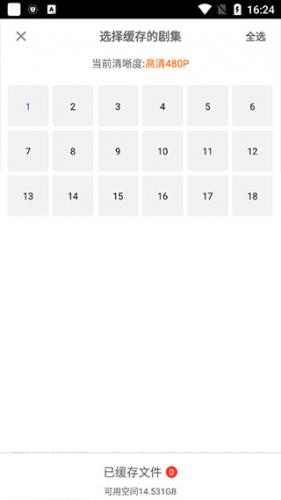 3、点击缓存即可查看可缓存的集数。