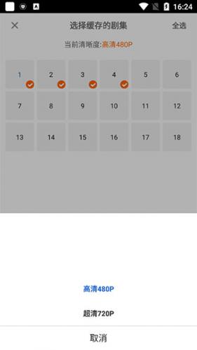 4、点击顶部清晰度即可选择缓存清晰度。