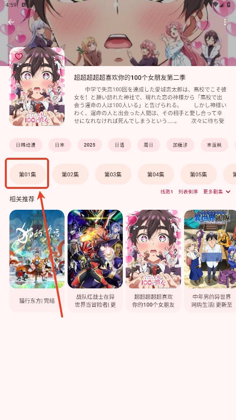 3.选择你想看的动漫,点击集数按钮,即可开始观看。