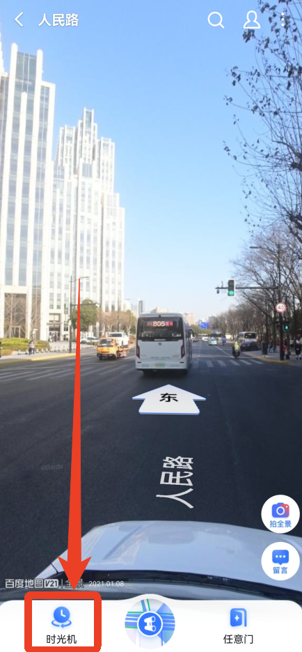 4、点击左下方的【时光机】,你可以观看这条街不同年份的景色。
