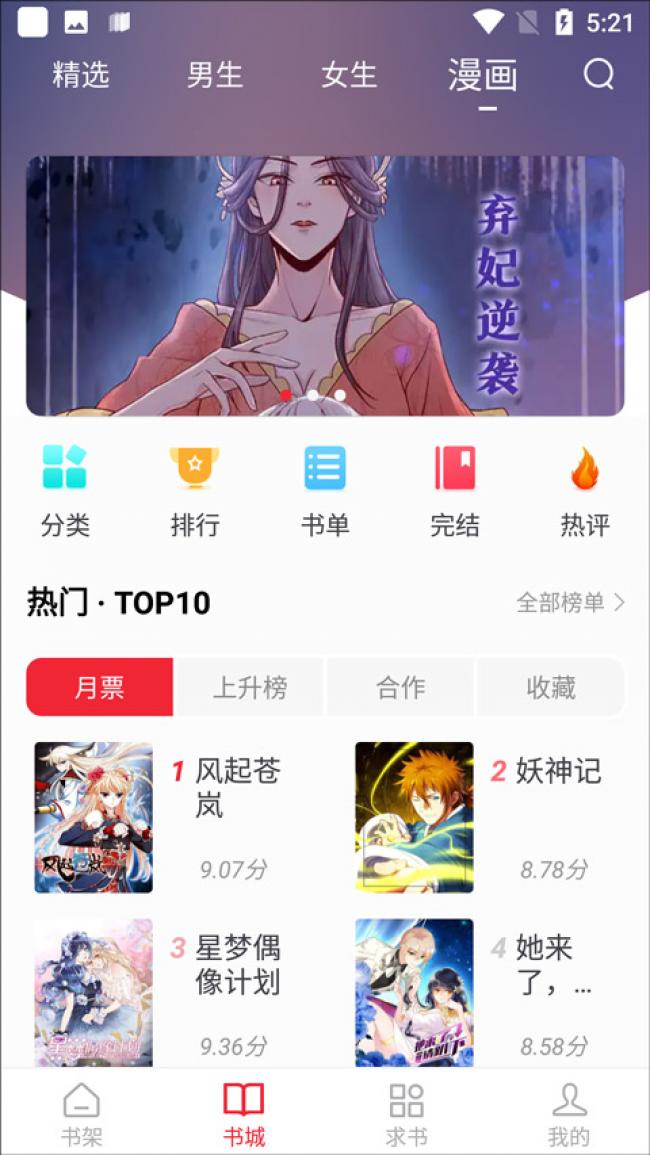 1、下载 APP,在“书店”一栏中,选择“漫画”一栏,即可查看不同类别的漫画。