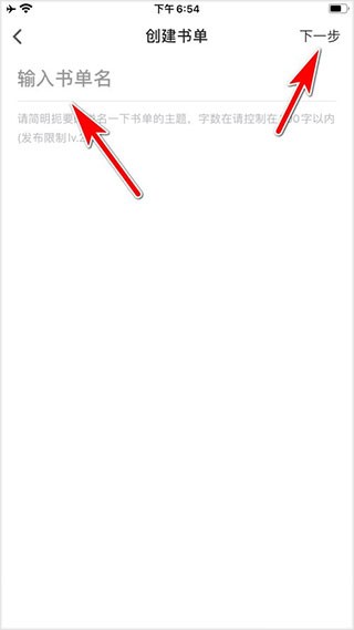 4、输入书单名称后,点击右上角【下一步】完成创建,后续可随时添加书籍、分享或设为公开。