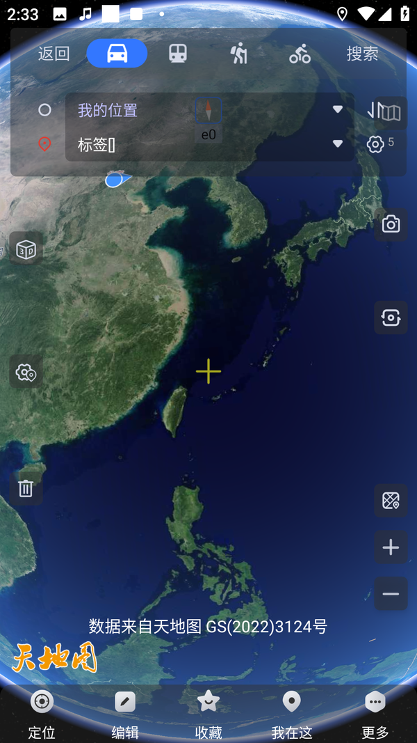 2、点击底部导航栏“编辑”,进入地图操作模式,长按定位起点,拖动查找目的地。