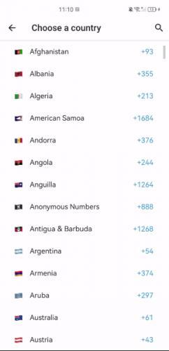 2. 选择当前手机号所属的国家或地区。(请务必选择支持注册的区域)
