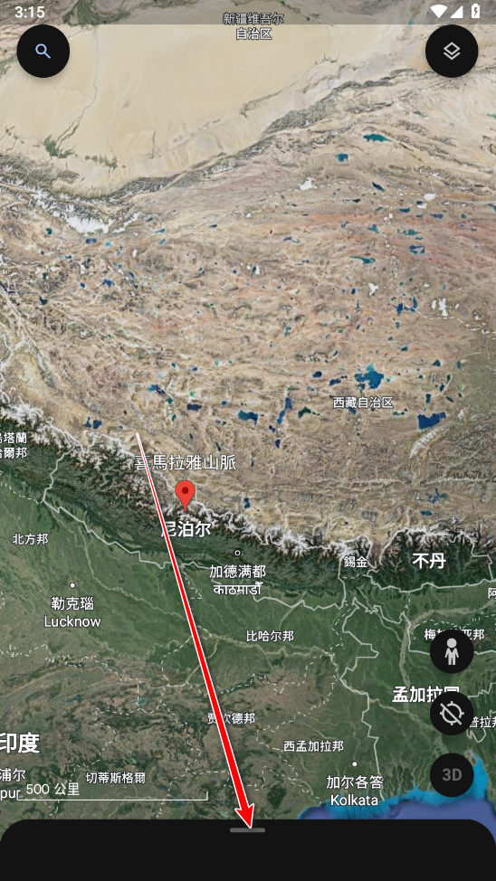 1、打开谷歌地球,首先我们需要在输入框找到我们想要看海拔的地点,我这里以喜马拉雅山为例