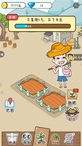 种田重启人生游戏下载,带你逃离都市喧嚣,回归宁静田园。在这款轻松治愈的模拟经营游戏中,主角厌倦了职场内卷,毅然返乡开启新生活。玩家将通过简单点击操作,体验种植、养殖、交易等丰富玩法,与鸡鸭鱼猪为伴,和NPC展开趣味互动——无论是“强买强卖”的市井交锋,还是努力讨好岳父岳母的温馨剧情,亦或是与伴侣的甜蜜日常,都在烟火气中还原生活的本真乐趣。