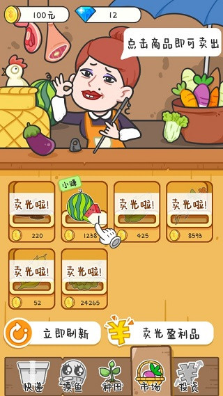 3. 收获后前往“市场”界面,点击待售货物即可一键出售,快速变现,赚取你的第一笔创业资金。