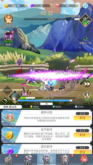 4. 画面流畅,支持战斗加速、经验加速及自动下一关,彻底解放双手。