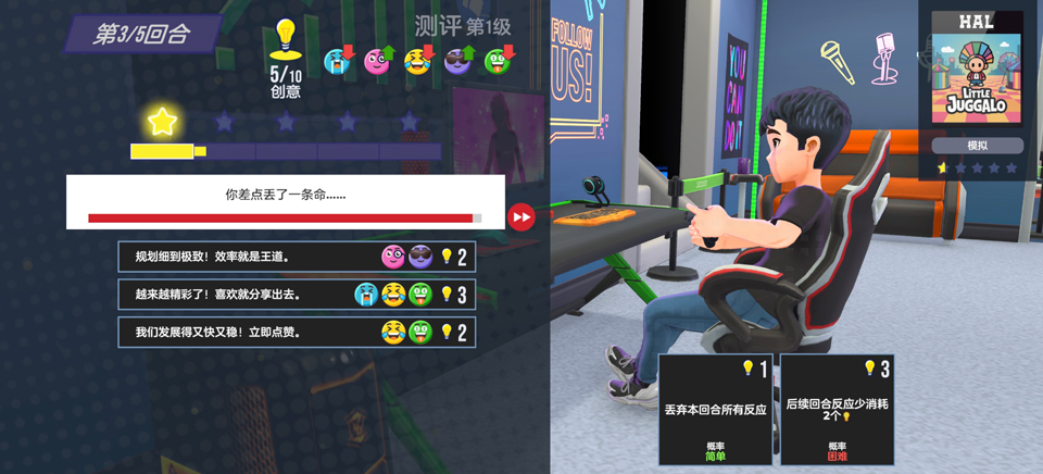 5、在测评过程中,通过不同选项影响内容表现,争取获得更多星星评价;