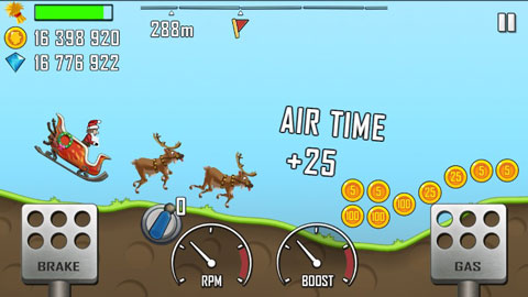游戏操作简单直观,仅需控制左右两个虚拟踏板——左侧为刹车兼重心调节键,影响后轮稳定性;右侧为油门,控制前部姿态。目标是在崎岖山路中尽可能前进更远,并沿途收集金币与钻石。