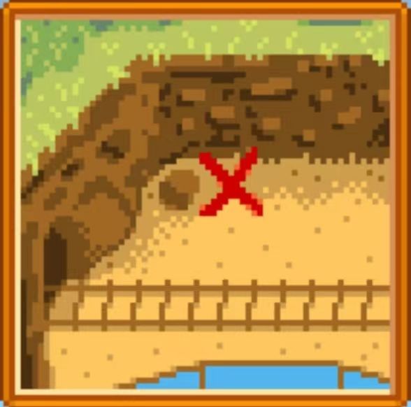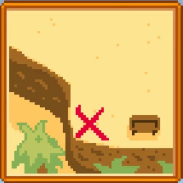 (前往铁路区域,使用锄头在图示位置挖掘,可发现藏宝箱)