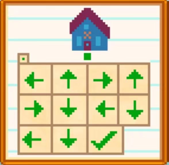 (起点位于1柳巷——乔迪与山姆家门口的绿色方块处,按箭头方向行走,遇障碍转向,循环前进,最终可在镇长刘易斯屋后找到黄金雕像)