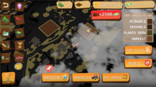 1、积累的金币解锁更多土地,扩大种植面积,很多不同的成就任务可以去达成。