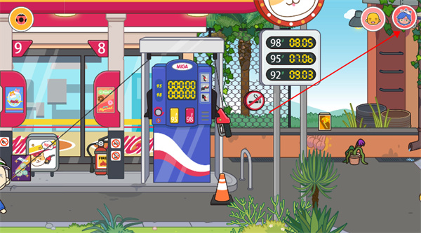 3、直接点击右上角的图标,再去找到一个工作人员,直接拖进这个加油站中。