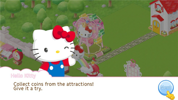 4、跟凯蒂猫一起来建造一个精彩的游乐园吧,点击下一步继续;
