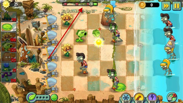 3、在屏幕上方的进度条会显示当前的游戏进度,消灭一切僵尸即可顺利通关。