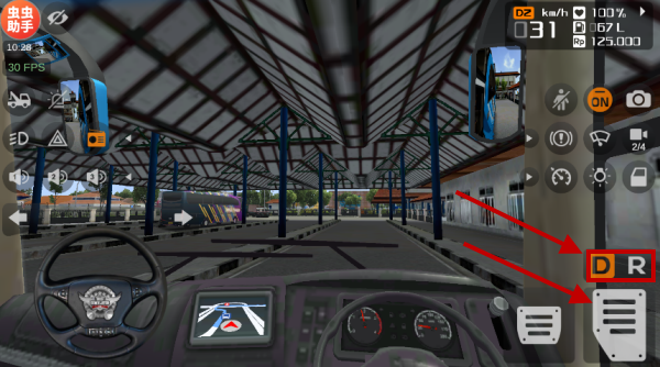 4、挂好档位,踩下屏幕右下角的油门按键就可以前进了。