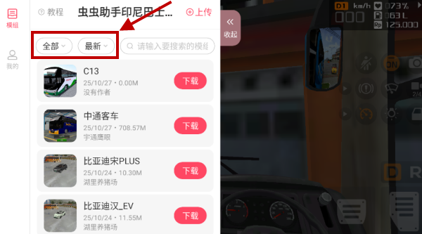 2、然后就可以在这个界面下载到你想要的模组了,还可以进筛选。