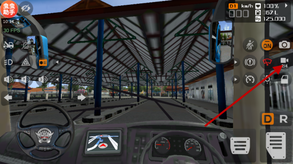 3、点击屏幕右侧的摄像头按键就可以切换不同的驾驶视角。
