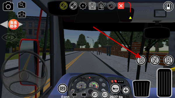 2、切换到第一人称视角后,我们可以看到屏幕右侧的档位,D档代表前进、N档为空档、R档代表后退。