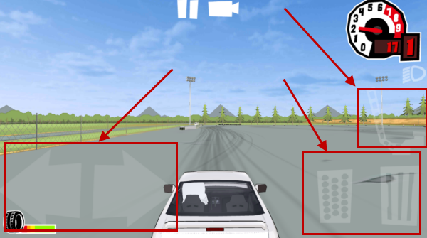 5、可以看到屏幕左侧的两个按键为赛车方向控制按键,右侧为刹车和油门按键,上方还拥有一个手刹按键。