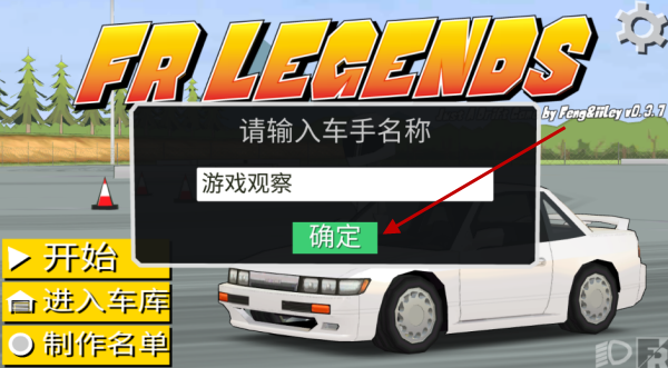 1、进入到游戏中后,我们首先需要输入车手的名称,点击确认。