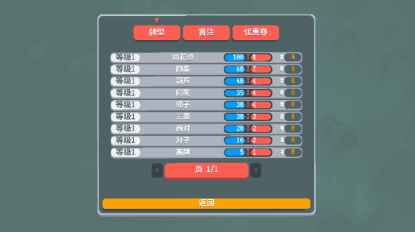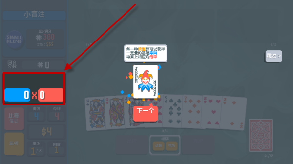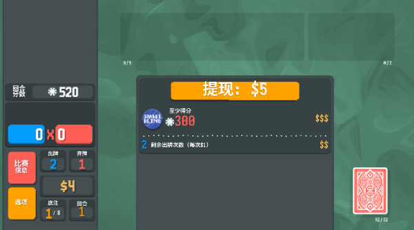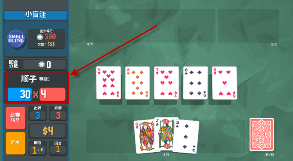 3、在游戏中,我们主要的玩法就是打出各种各样的牌型,来组合成相应的分数。