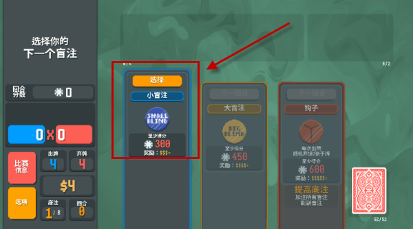 2、我们首先先选择小盲注开始游玩。