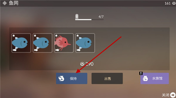 2、接着选择你想要放到水族馆中的鱼,点击下面的保持按键即可。