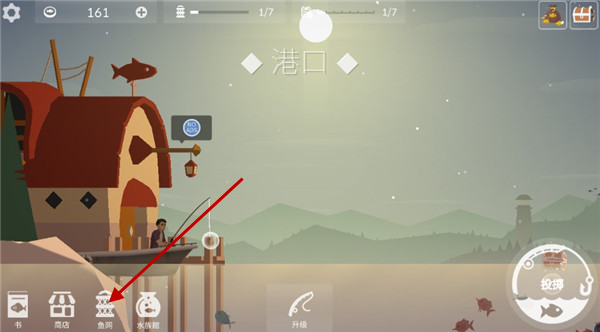 1、钓上来的鱼将会存放在鱼网中,我们点击渔网。