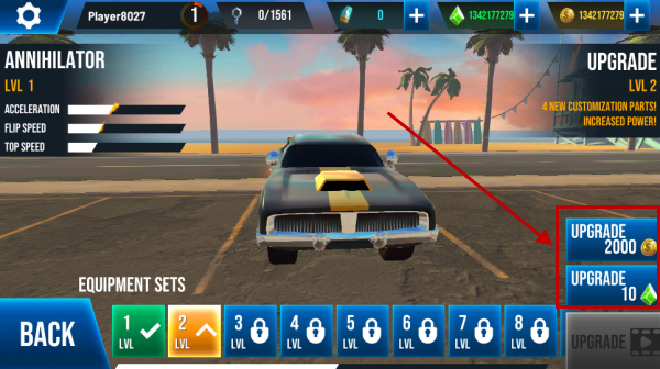 2、我们可以使用游戏中两种不同的游戏币来为赛车进行升级。