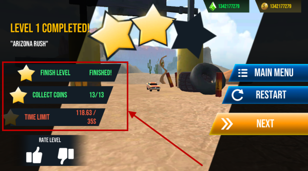 5、抵达终点我们就通关了,屏幕左侧显示的是通关等级所需要达成的条件。