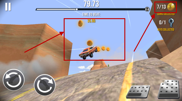 3、在关卡中会存在着像这样的金币,我们可以进行收集,跟得分有关!