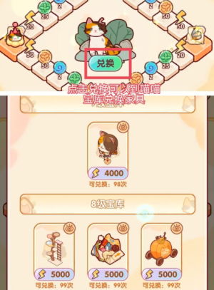 4、点击兑换可到喵喵宝库兑换相应家具。
