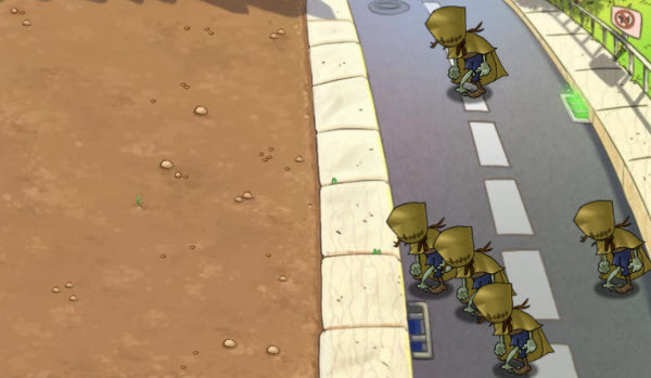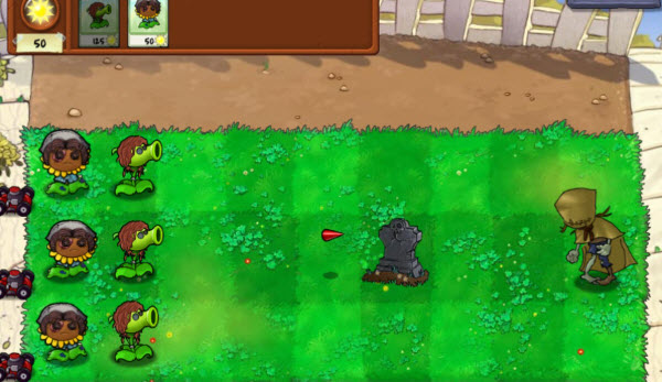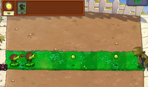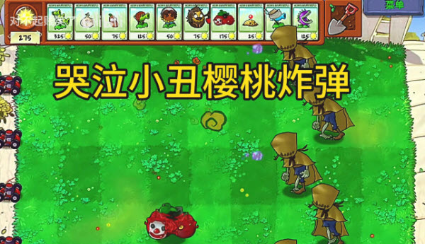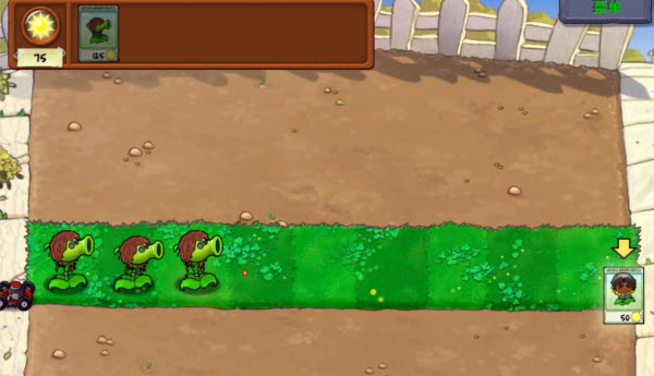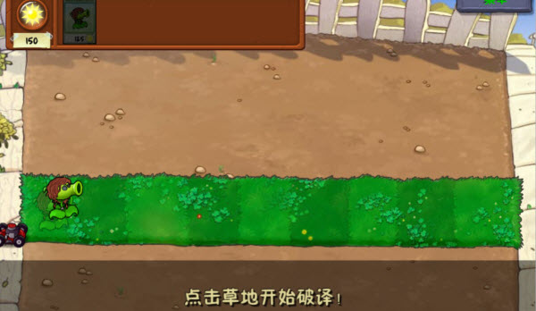 1、进入游戏,和压板一样,点击植物就可以将其种植在草地之上。