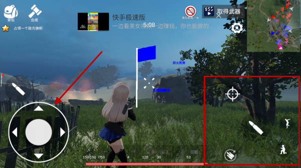3、可以看到屏幕的左侧是用来控制我们角色的移动的,右侧是瞄准、开火和其他动作按键。