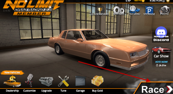 1、下载好游戏后,我们进入到游戏中,点击屏幕右下角的Race按键进行游玩。