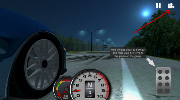 6、右上角的摄像头按键可以用来切换我们赛车的驾驶视角。