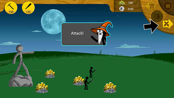 3、一旦自己一方火柴人数量达到一定程度,那么就可以发动攻击