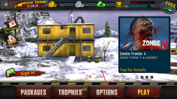 1、过完新手教程,在游戏的主界面,我们可以看到屏幕下方的OPTIONS,点击进入。