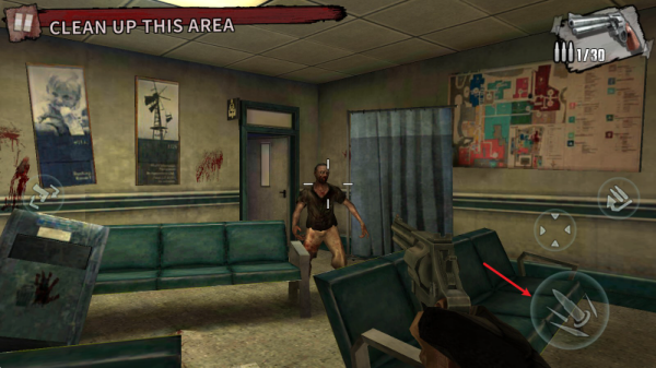 1、进入到游戏中,我们拖动屏幕就可以完成瞄准,点击右边的按键就可以完成射击。