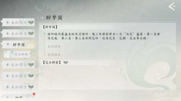 5、右侧书本图标可以观看的当前解锁的势力与故事。
