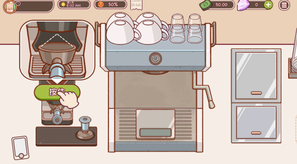 2、我们点击屏幕上的按钮就可以研磨咖啡豆。